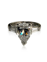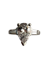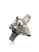 3 carat Pear shape cz tapered baguettes on the sides 14k white gold