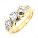 Cubic Zirconia 3 Stone Round Half Bezel Two Tone Gold Cz Ring