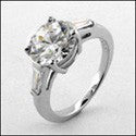 3 Stone 2.25 Round Center Tapered Baguettes Cubic Zirconia Cz Ring
