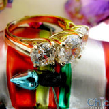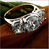 3 Stone Ring 2 Ct Round Center 1 Ct Round each Side Cubic Zirconia White / Yellow Gold Ring