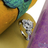 3 Stone 2 Ct Round Center Cubic Zirconia Cz Ring