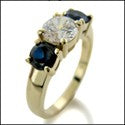 3 Stone 2 Round Sapphire Cubic Zirconia Cz Ring