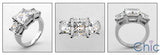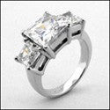 A fascinating three-stone ring with high polished solid shank, a high quality princess cut cubic zirconia in prong setting, with princess cut cubic zirconia in prong setting on the sides.