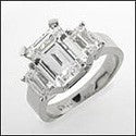 4 Carat Emerald Cut High Quality Cubic Zirconia 3 Stone Ring 14 White Gold