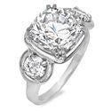 6 Carat Cushion Cut Center Round Cubic Zirconia 3 Stone Ring 14K White Gold