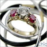 3 Stone Diamond Centrer Ruby All Round Cubic Zirconia Cz Ring