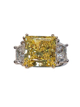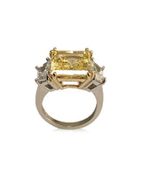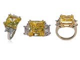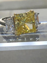 6 Carat Canary Princess Cut and Trapezoids CZ 3 Stone Ring in Two Tone