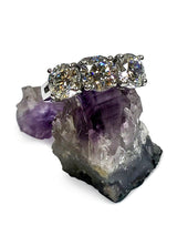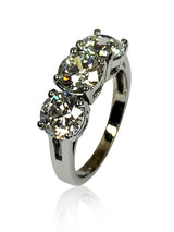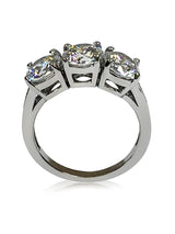 This 3 stone cubic zirconia ring is showcasing IGI certified, AAA high Quality Round Stones. Each stone is symbolic for Past, Present and Future. Great Anniversary Gift! The round brilliant cz are set in popular basket style prong setting. The top of the shank has a unique opening. Each stone is a perfect 1 carat.