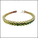 Rainbow color cubic zirconia tennis bracelet with AAA high quality and IGI certified round stones. This eyecatching bracelet has half bezel set round stones, such as sapphire blue, canary yellow, pink, Ruby red, emerald green, peridot, orange, deep orange, amethyst purple, topaz blue, and citrine yellow. Each link has a 0.20 carat round cz. The tennis bracelet has a secure double lock. The TCW is 9.2 carats. The bracelet is made in solid 14k yellow gold.