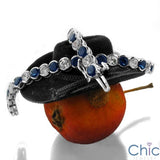 A beautiful colorful bracelet with round cut sapphire color and diamond color cubic zirconia stones set in half bezel setting.