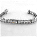 A beautiful bracelet with emerald cut high quality cubic zirconias with high polish solid finish.