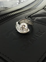 Attractive ring set with graduate AAA high quality baguettes in channel setting. Round Brilliant cut center stone is set in 6 prong Tiffany setting.