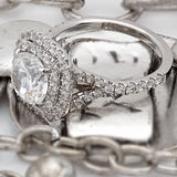Tiffany Soleste Style 2 Carat Rounded Cushion Cubic Zirconia Ring Halo Pave 14K W Gold