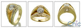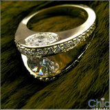 Eye catching extravagant ring with split top, set with AAA high quality 1 carat round center stone in channel setting. Sides are set with small pave set stones. Harvey shank.