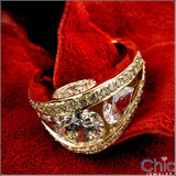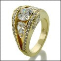 Estate Round Pear Channel Yellow Gold Cubic Zirconia Cz Ring
