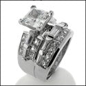 2 CARAT HIGH QUALITY PRINCESS CUT CUBIC ZIRCONIA ENGAGEMENT RING WITH MATCHING BAND. This striking cz engagement ring set has a high polished solid heavy and wide shank, and AAA high quality, IGI certified Princess cut diamond quality cubic zirconia center stone. The Princess cut cubic zirconia is set in V shaped style 4 prong setting. The shank of the set has princess and baguette shaped diamond cubic zirconia in channel setting on the sides. PerfeCt ly fitted matching wedding band completes the set.The cubic zirconia matching engagement ring set is made in solid 14k white gold. "14K" stamp is inscribed.