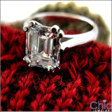 3.0 carat diamond quality AAA cubic zirconia emerald cut set in double wire setting.