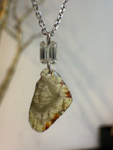 Strung on a 16-inch 14k white gold chain, this one-of-a-kind talisman embodies the quiet strength of nature and timeless elegance.