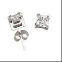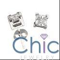 An attraCt ive high polished stud with high quality white princess cut cubic zirconia in a prong setting.