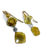 Raw elegance meets refined craftsmanship in this one-of-a-kind natural diamond pair of earrings. Four hand-selected sliced natural diamonds create a textural rhythm, totaling 5.88 carats, while two brilliant-cut natural diamonds (0.56 carats total) add a luminous sparkle in contrast.