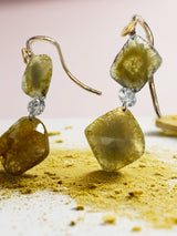 Gracefully suspended from a fine 18k gold wire and accented with a pure 24k gold dot, the 31mm drop adds just the right amount of movement. Earthy, bold, and effortlessly chic—this piece is designed for the modern collector who embraces rarity and raw beauty.