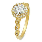 1.25 Highest Quality Cubic Zirconia Halo 14k Yellow Gold Engagement Ring