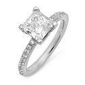 Finest Quality Cubic Zirconia Princess Cut Engagement ring is showcasing 1.5 Carat Center stone. The Cubic Zirconia stones are AAA high Quality, IGI certified. The shank is 2.5mm wide and is set with small round cz in pave style setting.