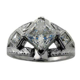 1.5 Carat Princess Cubic Zirconia Kite Positioned Center Hand Engraved Shank 14k W Gold