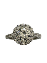 2.0 Round Cubic Zirconia Engagement Ring with U Pave set Halo 14k white gold