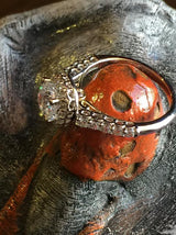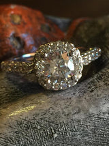 1 Carat Cubic Zirconia Cushion Two Tone 14K Gold Filigree Engagement Ring