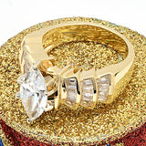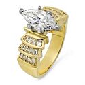 3 Carat AAA high quality, IGI certified cubic zirconia Marquise center stone is set in 6 prong Tiffany style setting. The engagement ring measures 9mm at the widest point. The sides of the shank are set with baguettes in channel setting. Heavy solid ring.