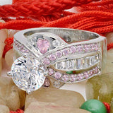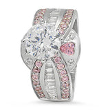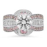 2 Carat Round Cubic Zirconia Engagement Ring Pink Heart Pave 14K White Gold