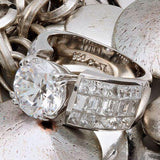 3.25 AAA High Quality Round Cubic Zirconia Engagement Ring Invisible set Princess Baguette 14K White Gold