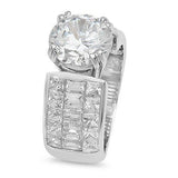 AAA High Quality, IGI certified Round Cubic Zirconia Center stone Engagement ring.The 3.25 Carat Round Brilliant CZ is set in Double wire prong setting. The shank is 9.5 mm in width. The sides of the engagement ring are set with Princess cut and Baguette Combination in Invisible style setting. Heavy solid ring.