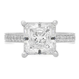 3.5 Carat Princess Cut Cubic Zirconia Center Stone Engagement Ring Micro Pave Eternity Shank 14K White Gold