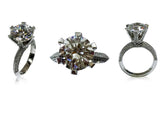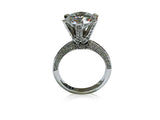 This 4.5 Carat AAA High Quality IGI certified Cubic Zirconia Engagement Ring is for people that love tall/high profile settings. The 4.5 carat CZ is set in 6 prongs setting. The prongs are jeweled with micro pave small round stones. The knife shank is 3.25mm wide and has stones in 4 rows. The engagement rings sides stones go half way down the shank. This engagement ring has more than 150 stones.