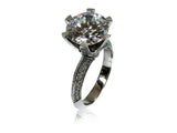 4.5 Round Cubic Zirconia High Setting 6 Prongs Knife Shank Micro Pave Engagement Ring 14K White Gold