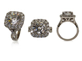 4 Carat Cushion cut cubic zirconia in Cushion Style Halo 14K white gold Engagement ring