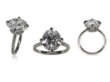 This Oval 5 carat Cubic Zirconia Engagement Ring is a show-stopper.The Oval Cubic Zirconia has AAA high quality and is IGI certified. The center stone is placed in 4 prong setting, that's jeweled with small pave set round cz stones. The round stones continue on the shank as well, which extends down to 3/4 of the shank.