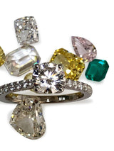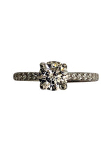 Delicate 1 carat AAA Highest Quality, IGI certified round center stone engagement ring. The center cz is 6.5 MM in diameter. It is set in 4 prong setting. The sides of the shank are set with small pave set stones. The width of the shank is 2 MM in width. The eternity band- item #8629b shown in one of the videos is not included with this purchase.