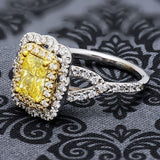 Canary Radiant Two Tone Halo Cubic Zirconia Ring
