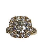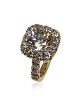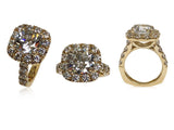 Cushion Cut CZ 4 Carat Engagement ring with Euro shank 14K Yellow Gold