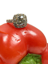 This exquisite engagement ring is set with AAA high Quality, IGI certified 4 carat rounded cushion cut in prong setting. It is surrounded by cushion shaped halo. Each side stone is measuring to 0.10 carat in a The Euro style shank and is displaying French U pave set round stones. The squared off shank ( Euro Shank) helps keep the ring from moving side to side.heavy solid shank.