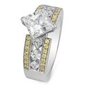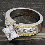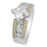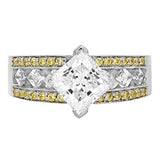 Diamond Quality Cubic Zirconia Princess Engagement Ring Canary Pave 14K White Gold