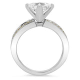 This diamond Quality Cubic Zirconia Princess Cut Engagement Ring has a 1.5 Carat AAA High Quality Princess Cut Cubic Zirconia and is IGI certified . The center princess CZ is set in V Prong setting in kite position. The shank has 6mm width and is set with pave set round canary cz stones and princess cuts in the middle section, positioned as kite as well.