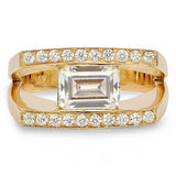 Emerald Cut CZ Channel Set Horizontally Euro Shank 14K Gold Ring