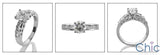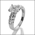 A charming engagement ring with high polished solid shanks, a AAA high quality round cubic zirconia center stone in 4 prong, and round cubic zirconias in channel on the sides.