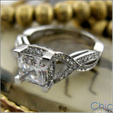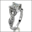 Engagement 1.25 Asscher Cubic Zirconia Pave Set Rounds Side Stones Cz 14K White Gold Ring