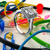 Engagement 1.25 Ct Princess Halo Pave Cubic Zirconia Cz Ring