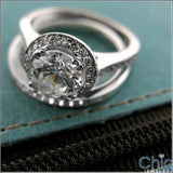 Engagement 1.25 Round Center Halo Cubic Zirconia White Gold 14k Ring